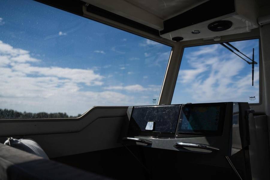 Минималистичный интерьер функционален не в ущерб комфорту: на борту Phantom Cabin может разместиться до 12 человек, пять — на носовой площадке. В просторной кабине пассажирские сиденья у поста управления можно развернуть к столу, таким образом увеличив количество посадочных мест в динетте, обрамляемой L-образным диваном.