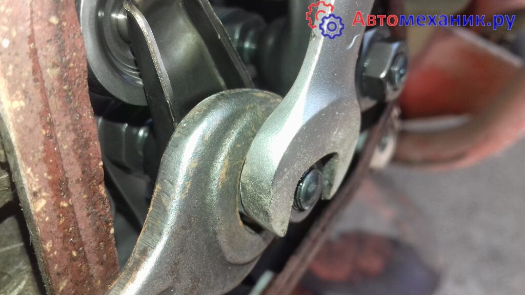 - Регулировочный винт затягивается, пока коромысло не упрется в щуп. Щуп слегка передвигают, винт затягивают, пока щуп не начнет передвигаться с небольшим усилием.