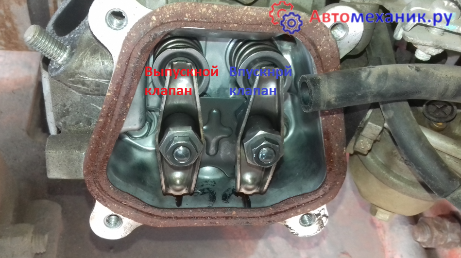 Впускной клапан расположен ближе к карбюратору Выпускной к глушителю