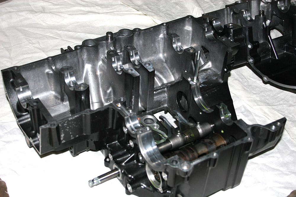 Далее – особенно комментировать нечего. Обычный процесс ремонта и сборки картера двигателя мотоцикла. Очистка всех деталей, использование только оригинальных комплектующих, новые прокладки и вкладыши. Единственное, что было модифицировано в “нижней” части двигателя – на зуборезном станке несколько “завалены” углы на некоторых шестернях КПП для снижения ударных нагрузок при переключении передач.