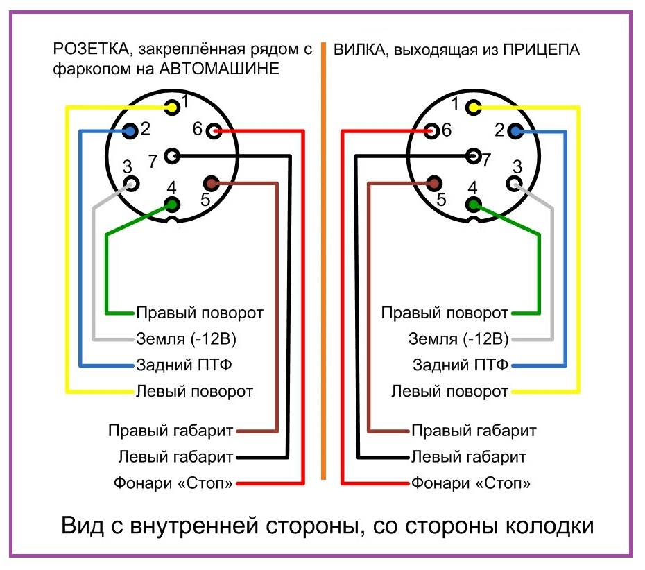 Распиновка розетки фаркопа 7 пин в легковых автоприцепах
