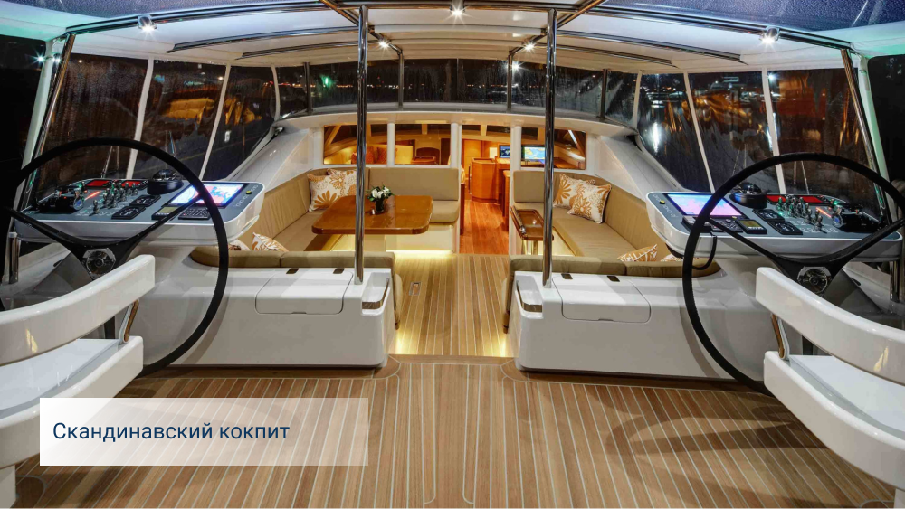 У скандинавских кокпитов есть и недостатки. Самый главный – ограниченный обзор, что затрудняет рулевому управление судном. Роскошные прогулочные яхты сегодня все чаще строят с так называемым «дек-салоном», то есть полностью застекленным кокпитом. Таким образом компенсируют и другой недостаток скандинавских кокпитов – тесноту.