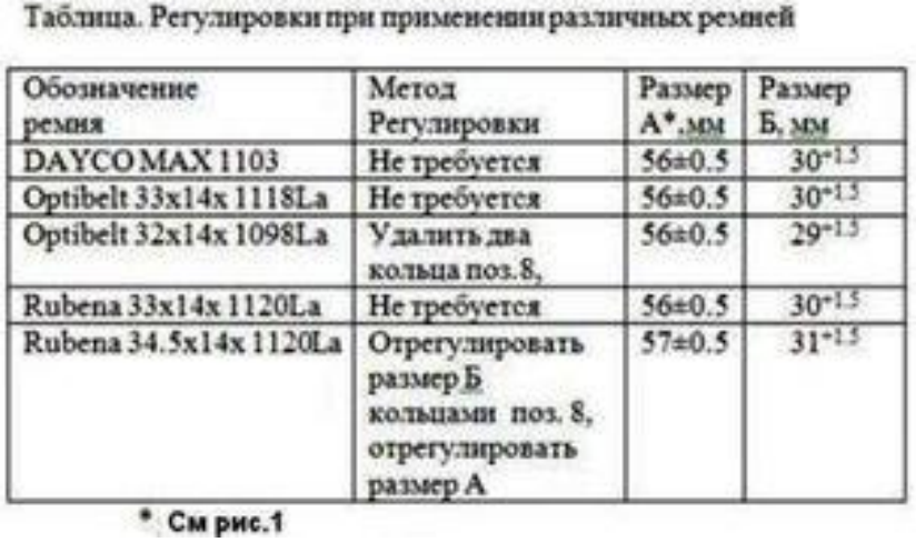 4. Регулировка ведущего вариатора Регулировка ведущего вариатора заключается в выставлении размера Б, согласно таблицы выше, для Rubena 33x14x1120La размер Б=30 мм с допуском + 1,5мм. Регулировка выполняется с помощью шайбы (шайб) 8, устанавливаемой между крышкой вариатора и валом вариатора. Если например вариатор изготовлен под 33 мм ремень, а требуется поставить на 32 или подношенный 31,5мм, а размер Б не удаѐтся сделать меньше 30 мм. Регулировку можно выполнить подкладкой шайб, применяемых для регулировки ведомых вариаторов (32х25,5 мм), между крышкой вариатора и корпусом подвижного конуса.