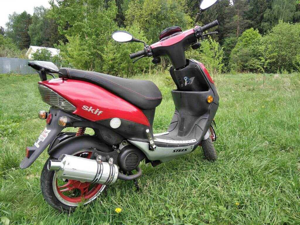 Нет никакого смысла вкладывать деньги в улучшение предельно дешёвого скутера. Некоторые обладатели Stels Skif ставят на него поршневую увеличенного объёма, в продаже есть наборы на 80сс, но толку от этого немного. Если динамики не хватает, лучше с самого начала купить технику помощнее, что-нибудь на 125сс или выше. Придётся открывать новую категорию в правах, но оно того стоит.