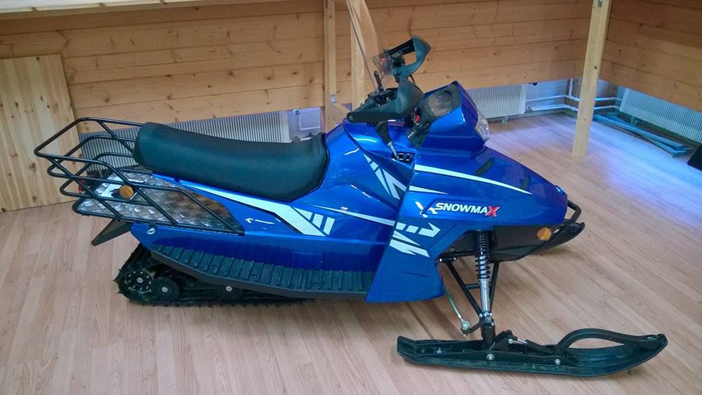 Аппарат устойчив, легко маневрирует на неровной дороге. В корпусе установлена розетка 12V, электронная панель приборов, система аварийного торможения и ручного запуска мотора. При этом некоторые покупатели утверждают, что снегоход тяжеловат для одного водителя (вес составляет 200 кг).