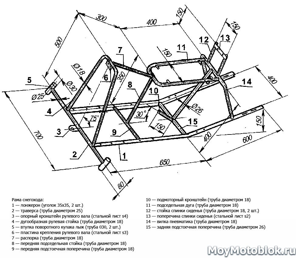 Чертеж простой рамы для самодельного снегохода