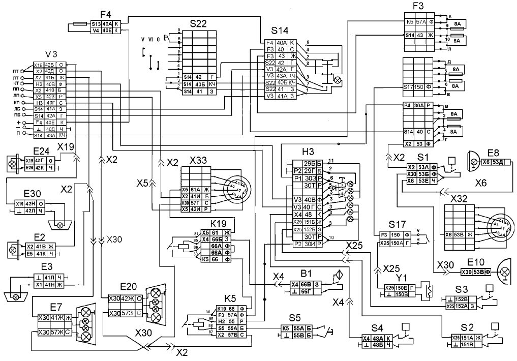 На схемах рядом с условным изображением элементов электрооборудования приведены номера присоединяемых электропроводов, буквами обозначен их цвет: Б — белый; Г — голубой; Ж — желтый; 3 — зеленый; К — красный; КЧ — коричневый; О — оранжевый; Р — розовый; С — серый; Ф — фиолетовый; Ч — черный. Цена распечатки 10 листов в разы меньше, чем стоимость инструкции, предлагаемой различными ресурсами и издательствами. Возможные неисправности проводки Поломки в работе электропроводки — это проблема, с которой сталкиваются многие наши соотечественники. В системе применяется реверсивный электродвигатель МЭ