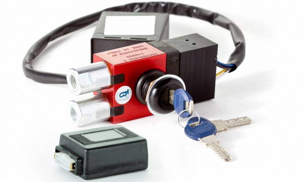 - блокираторы замков зажигания. Обычно такие устройства многофункциональны, совмещая роль штатного замка и блокиратора пуска стартера. Способ требует замены замка зажигания, что делает практически невозможным способ взлома, основанный на подборе ключа. Угонщику придётся или выбивать личинку, или пробовать её прокрутить, что является нетривиальной задачей;