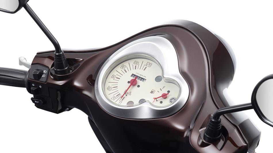 Классический дизайн нового D’elight сочетает в себе вневременную внешность с высоким качеством Yamaha. Фара и приборы подчеркивают ретро стиль скутера, а обтекатель защищает от ветра и непогоды. Широкий ряд аксессуаров оценит каждый владелец за возможность выбирать в соответствии со своими пожеланиями.