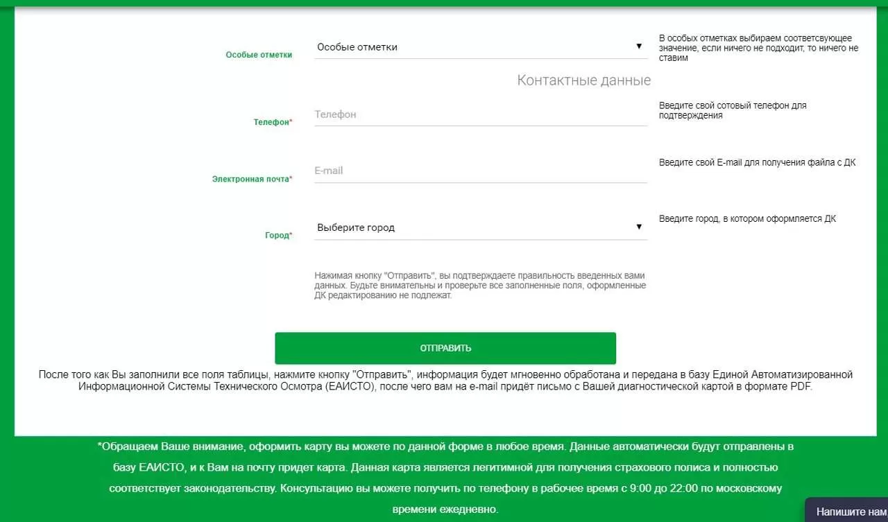 Записаться на онлайн ТО можно на сайте любого специализированного пункта техосмотра, предоставляющего такую услугу. От вас потребуется заполнить форму или прислать скан ваших документов на авто, указав пробег, тип топлива и марку шин. Заказ диагностической карты через интернет имеет ряд преимуществ перед посещением классического сервиса: