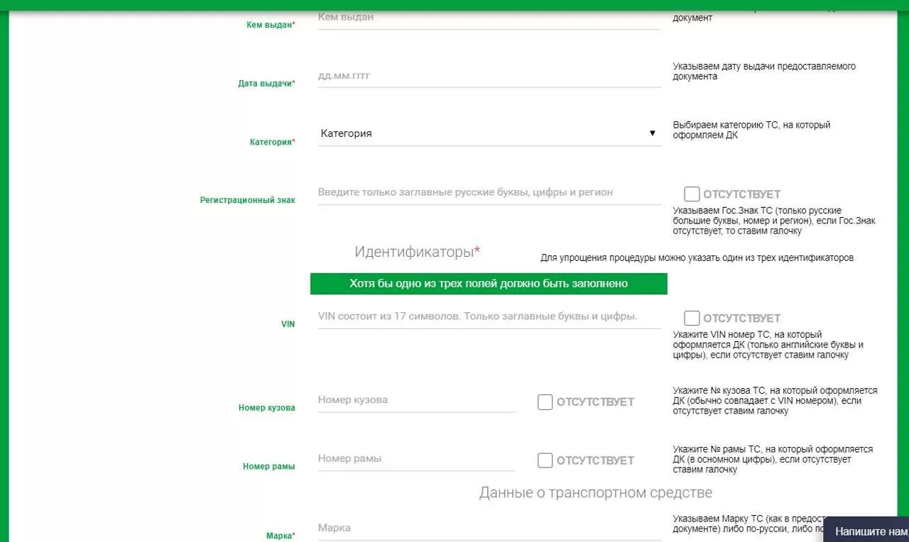 - Заполните предложенную форму фактической информацией из СТС и ПТС.