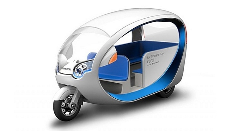 Водитель весом 120 кг чувствует себя комфортно за рулем этого небольшого трицикла, способного преодолеть расстояние 50 км.