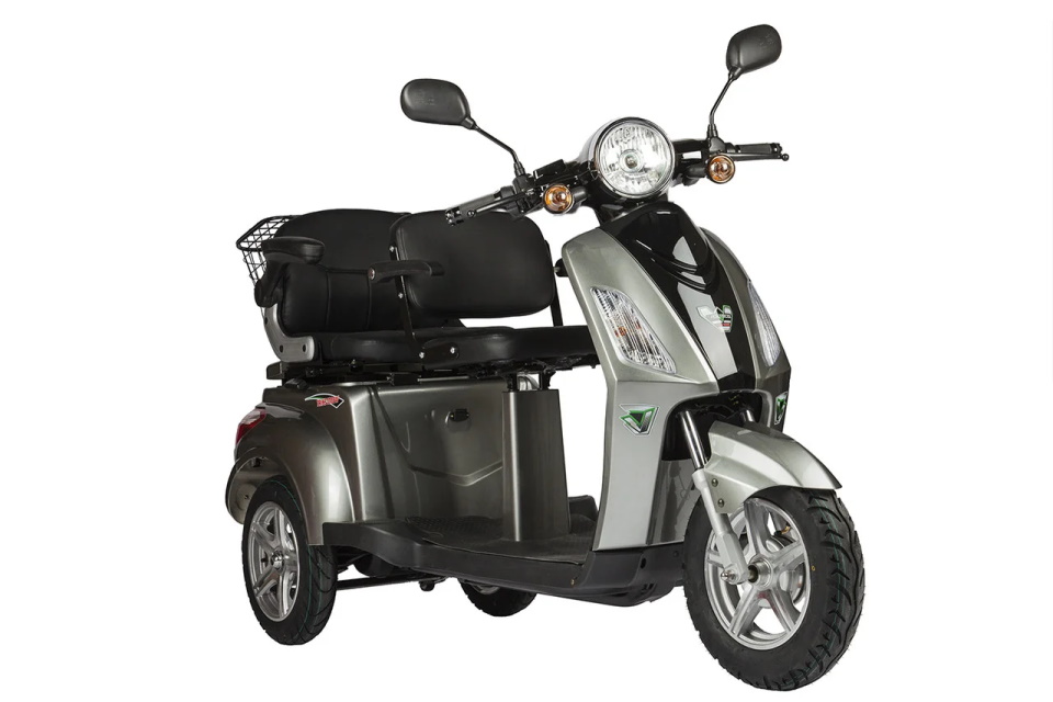Приобретая электроскутер двухместный трехколесный, учтите суммарный вес водителя и пассажира и сравните его с грузоподъемностью аппарата, а также обратите внимание на уровень комфорта