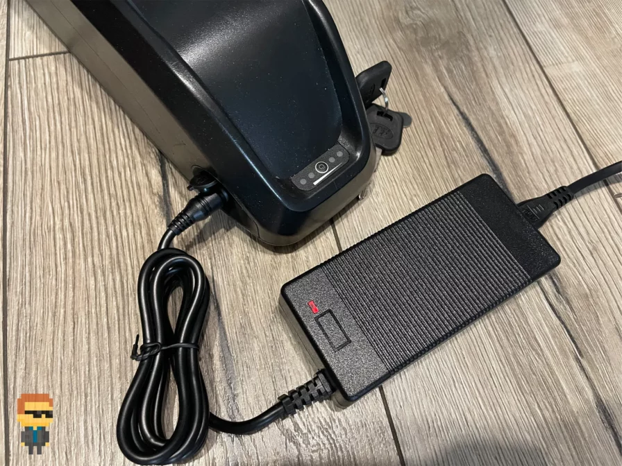 Заряжаем литий-ионную батарею электровелосипеда от бытовой электрической розетки 220 В.
