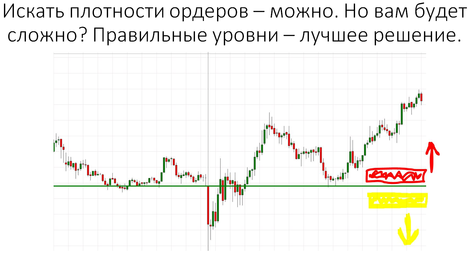 Искать плотности ордеров как и анализировать каждую свечу, в принципе, возможно, но не будет ли это для вас слишком сложно? Правильным решением является поиск уровней. На уровнях все принимают определенные решения, потому что их видят все – дядя Вася, крупный игрок, банк и т.д. Уровень – это то, что есть в каждом рынке.
