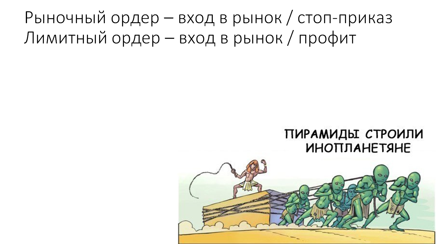Стоп в свое время было решено сделать рыночным ордером, потому что, если цена идёт против вас, вам необходимо максимально быстро закрыть позицию, чтобы банально не потерять много. Можно зайти в рынок с помощью стоп-приказа, но это тоже будет рыночный ордер.