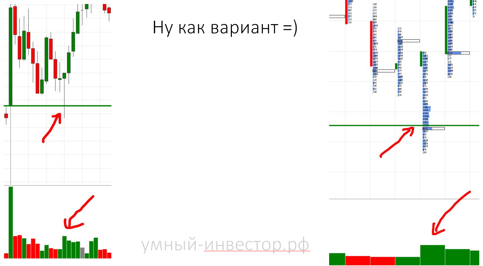 Важно запомнить, что здесь всегда будет, во-первых, повышение объёма, во-вторых, это может быть не толпа, а один игрок – крупный участник, поглотивший весь рынок. Он выставляет свой лимитный ордер или плотность ордеров, за счет которых рынок поглощается