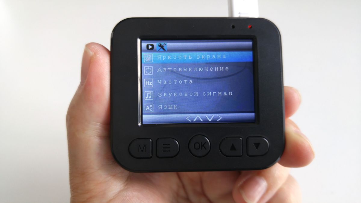 - Для того, чтобы перестал мигать красный индикатор REC, нужно нажать на клавишу “ОК» слева. Только при зеленом индикаторе STBY можно настроить видеорегистратор. Пока горит REC – настройки недоступны.