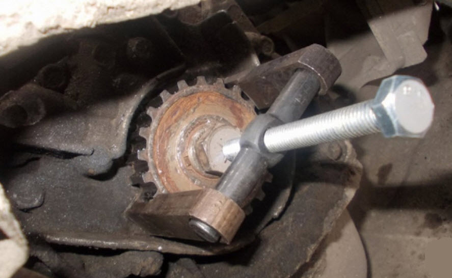 У большинства переднеприводных машин шкив закрепляется болтом. Перед тем как снять шкив коленвала, затянутый болтом, следует выполнить следующие операции: