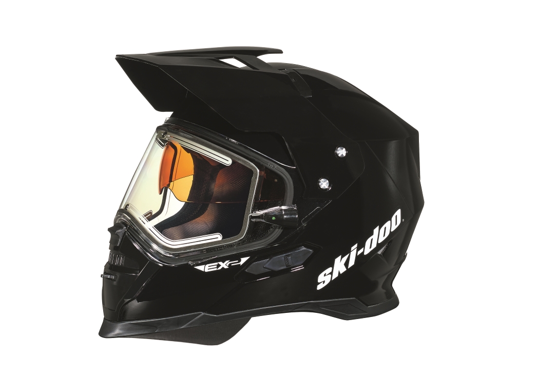 - Ski-Doo XP-3 – кроссовый шлем весом не более 1.5 кг с передней частью из прочной нержавейки, зимним дефлектором дыхания и регулируемым козырьком