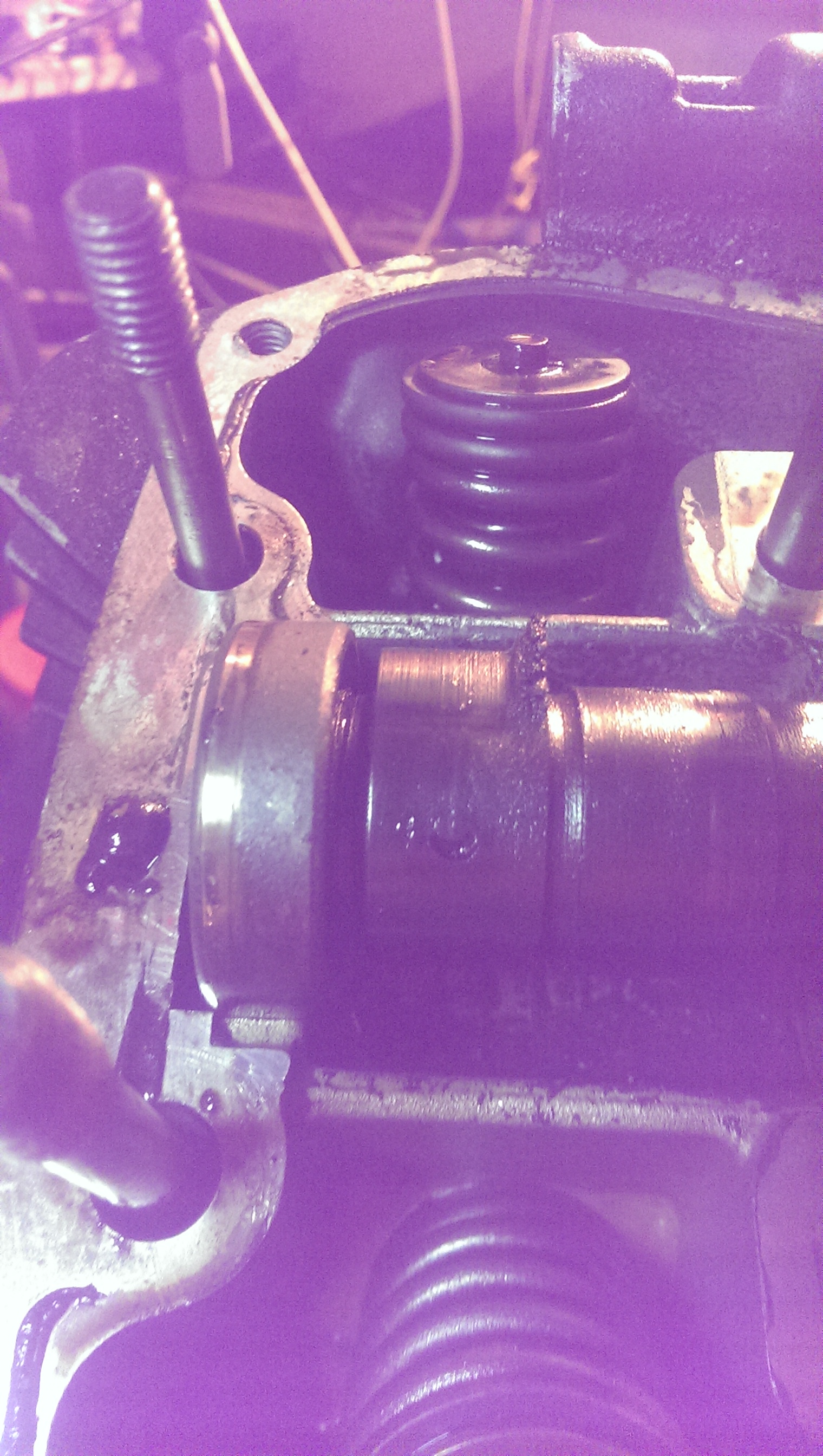В головке сухо, масла в ней не было давно. Ну что ж, коромысла и распред стоят копейки и подошли они хорошо. Выработки и люфтов на направляющих не было обнаружено.