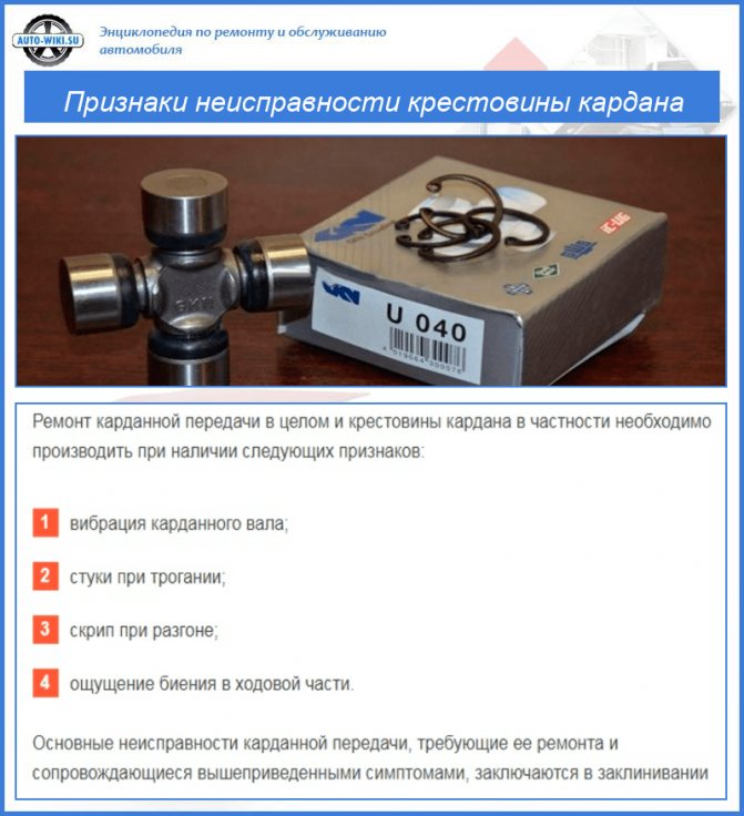 Признаки неисправности крестовины, требующие ее замены
